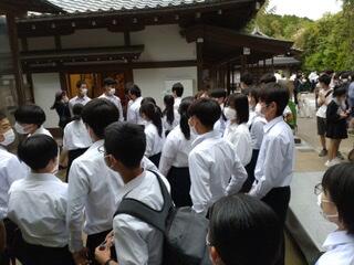 2箇所目の目的地へ向かうクラス、既に、2箇所目に到着したクラスと様々です