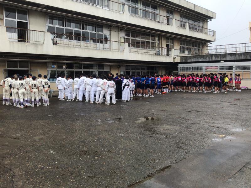 ラストを飾るのは野球部(^_^)/そして、恒例の全校応援、部長会長の話で壮行会を終えました。