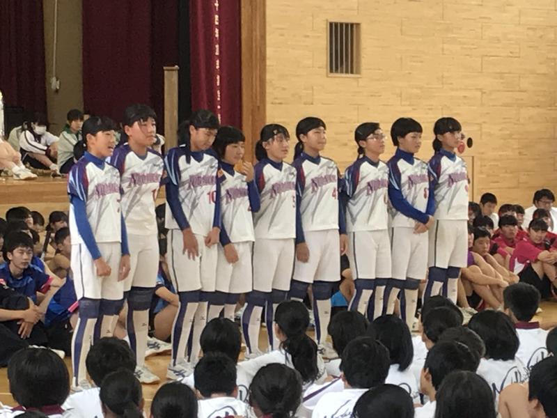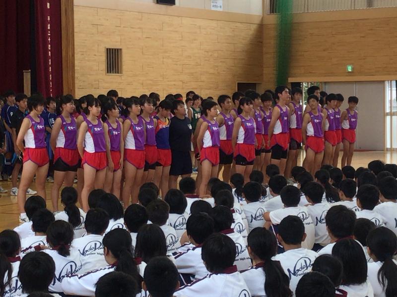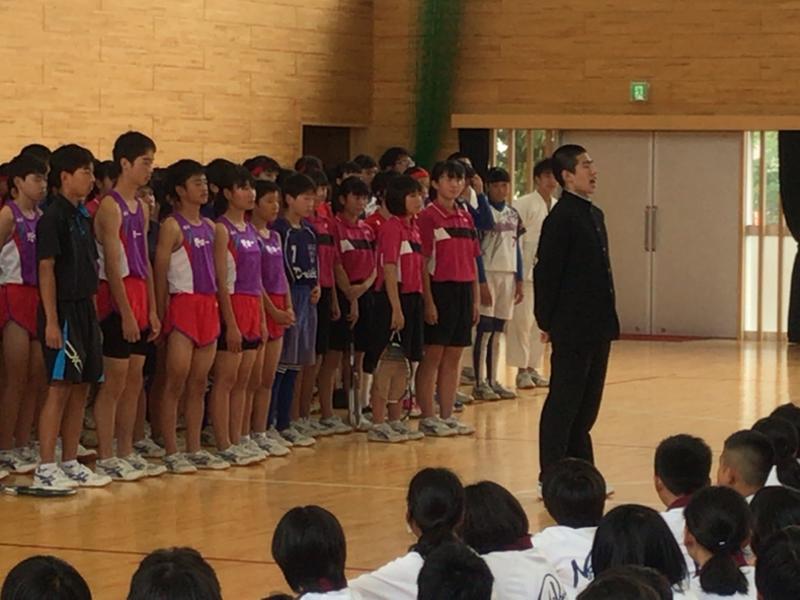 各部の発表です(^_^)/先陣を切って陸上競技部!続いてサッカー部、男女ソフトテニス部!