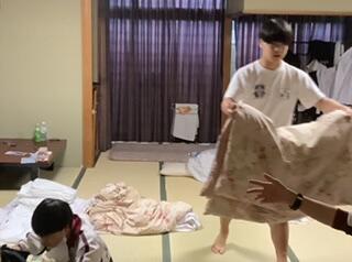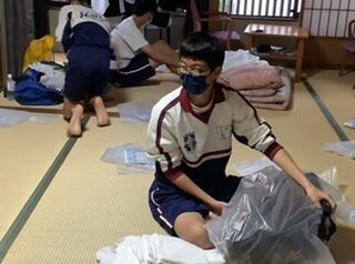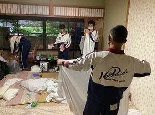 布団を片付けて、荷物をまとめます。