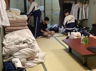 眠そうですが、、、 6時には至る所からアラーム音が聞こえ、皆んな眠そうに起きていました。