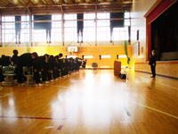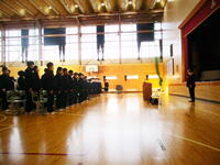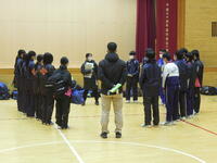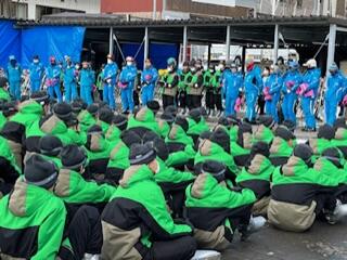 6:10係生徒が登校し、出発集会の準備が始まりました。