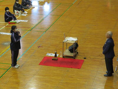 代表生徒の言葉や花束贈呈の場面では感動的でした。
