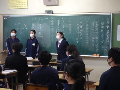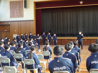 明日の卒業式を前に、3年生が自分たちの手で「二中ラスト」の学年集会を開きました。