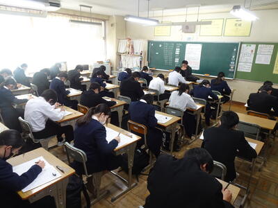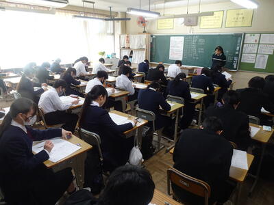 1年生が1月31日(水)の社会人講演会に向けて、清掃後に学年集会を行いました。