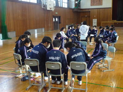 5校時に2年生がホワイトスクール(スキー林間)に向けて結団集会を行いました。