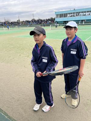 28日(日)白子町サニーテニスコートで行われました千葉県U13ソフトテニス選手権大会に1年生2名が参加しました。結果は、健闘したものの1回戦で敗れてしまいました。ベンチに戻ってきた表情から「くやしさ」があふれていました。そして二人で次に向けてのミーティングをし、「次は必ず勝つ!!」と闘志がみなぎっていました。