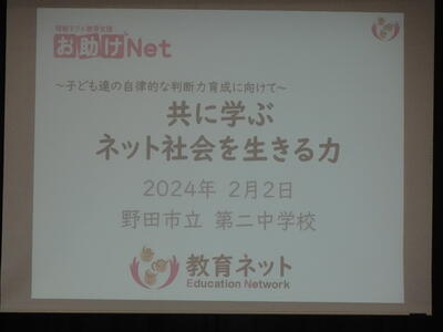 はじめに「家庭教育講演会」を行い「教育ネット」のお助けネットインストラクターの先生に講演をしていただきました。