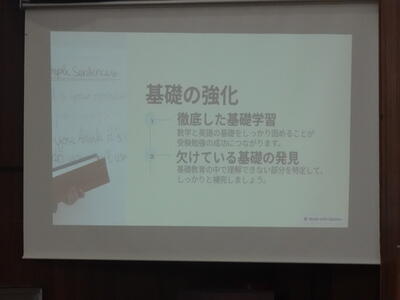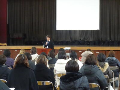 次に学校より資料にそって入学に関する説明をさせていただきました。