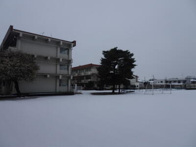 昨日の夕方からの降雪で校庭は真っ白に・・。