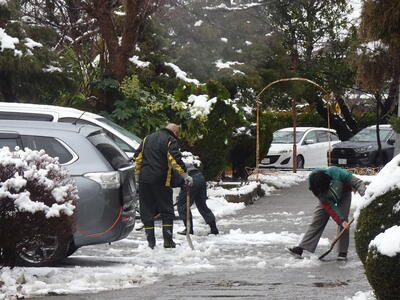 登校まで少し余裕があったので先生方で雪かきをして、生徒達が転倒しないよう整備する時間がつくれました。