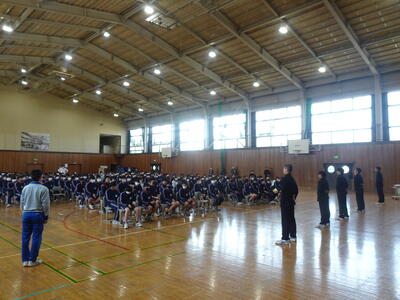 明日の卒業式を前に、3年生が自分たちの手で「二中ラスト」の学年集会を開きました。