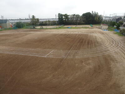 (昨日、陸上部短距離の選手がラインを引いてくれました。グラウンドは、もうすっかり体育祭仕様です)