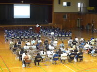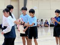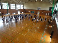 実は、本日のメインは第一中学校の体育館にあります。ここでは、第19回 仲ブロックバレーボール大会が開催されています。(出場チーム:仲ブロックの小中学校7チーム)