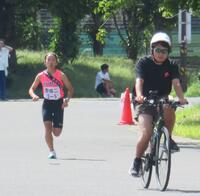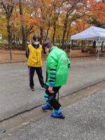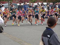 11人目のランナーがなぜか福田中のゼッケンを付けています。そうです。福田中が選手が足りず1チーム4名しかエントリできなかったため、合同チームで出場し、5区を任されました。