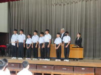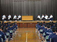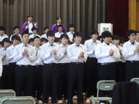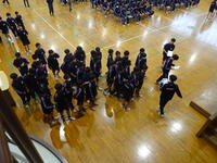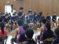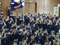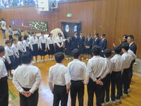 本日1時間目の練習は、各色の結団式です。各応援団、ダンスリーダーの紹介や決意表明、先生方の紹介を行いました。