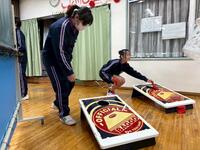 野田市中央公民館講堂で開催されている「青春の中学生!腕相撲王者決定大会」に参加していました。
