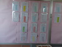 保健室前の廊下には、養護の下川先生が毎月の予定を掲示してくれています。