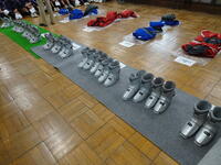 スキーをするのが初めての生徒が多いのか、ウエアの着方に戸惑ったり、ブーツを履くのに恐る恐る履いたりと、楽しそうにサイズ合わせを行っていました。