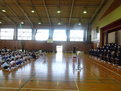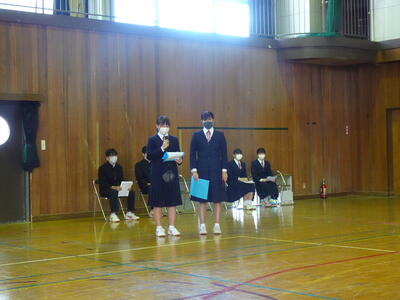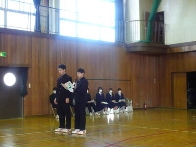 全体会では学校長より一年を振り返り「感染症の影響を受けた一年でしたが、得るものも多かった一年だった」と話がありました。