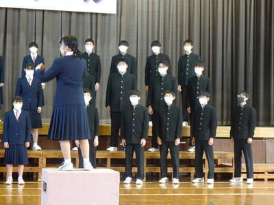 校長の話の中で「1年間の頑張りを振り返ってほしい。」「教育目標の4つの力が身についたか確認してほしい。」と話をしました。