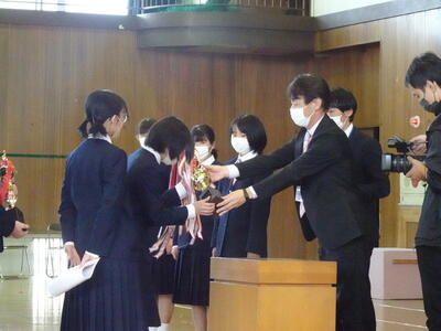 修了式では1・2年生の代表生徒に修了証を授与しました。