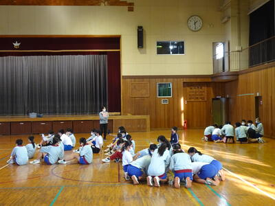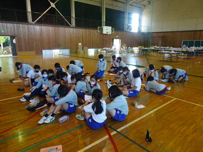 各委員会の班に分かれて1・2年生合同でチームを作りました。