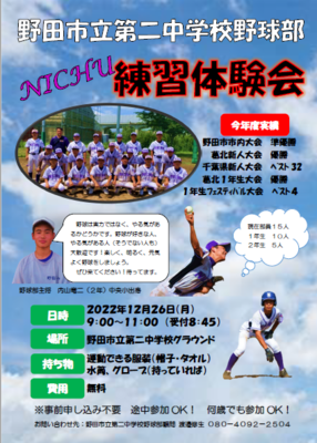 10月30日(日)二中会場で野球部の1年生大会が行われました。
