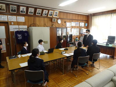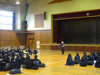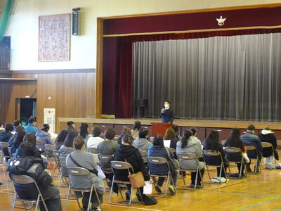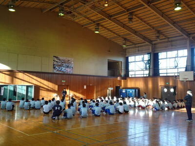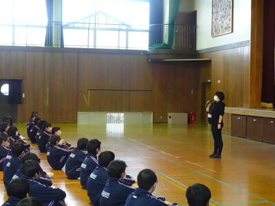 全体会では学校長、生徒指導主任、3学年主任(進路状況)より一年間の振り返り、春休みの過ごし方、卒業生の進路状況について話をさせていただきました。
