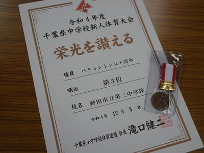 ◆3月26日(日)に「令和4年度第36回千葉県吹奏楽個人コンクール」が開催され、本校より「金管・打楽器部門:中学生・テューバ部門」に地区代表として1名出場しました。頑張りましたね!