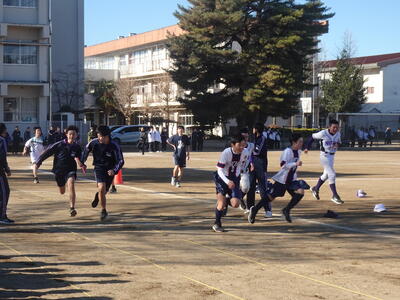 部活動対抗のスポーツ大会を通して、二中愛を高めたり、部活内や他部活との絆やコミュニケーションを深めることをねらいに行いました。