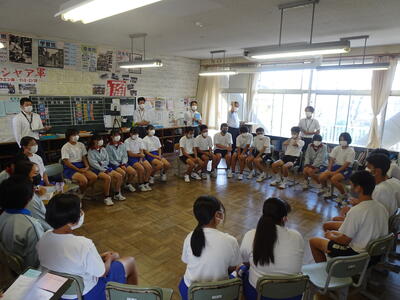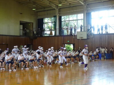 今日は放課後の時間に、男女各20名ほどの強化選手を集めて説明会(結団式)を行いました。