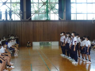6校時に第74回東葛飾地方中学校駅伝競走大会(正式名称)の壮行会を行いました。
