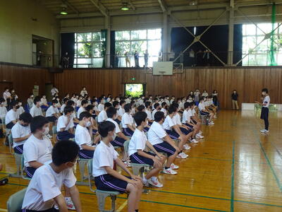1年生が6月3日(金)の校外学習に向けて学年集会を行いました。