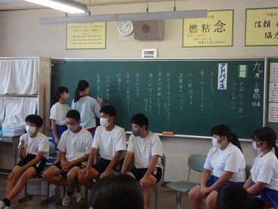 スローガンは「LINK(リンク)」に決定し、スローガン達成のための具体的な取り組みについて、その場で各学級で話し合い、発表も行いました。