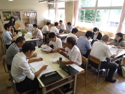 毎年、夏休み中に宮崎小学校の先生方と合同で行っている研修です。
