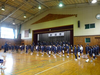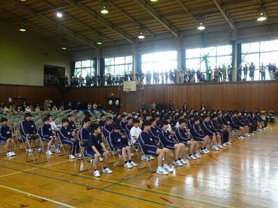 駅伝部は46名(男子30名・女子16名)、国際ボランティア部は80名ほど(都合で参加できない生徒がいたため概数です)が集まりました。