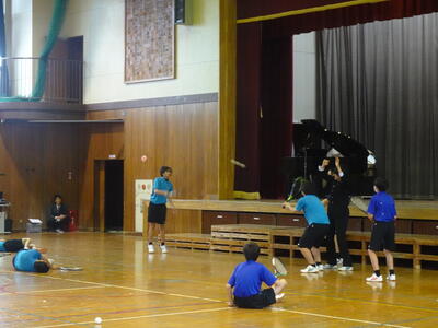 種目は雑巾がけリレー(二中の伝統!?)、二中三択クイズ、長縄跳びでした。