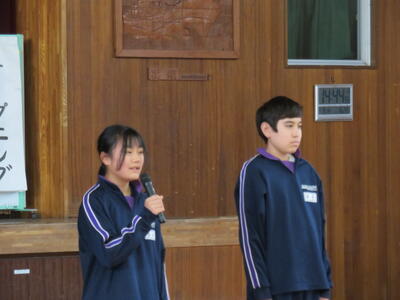 今日の生徒集会では、表彰(弁論大会、読書感想文コンクール、音楽部、バトミントン部)を行った後、部長任命式、東葛駅伝報告、2年生宇宙一プロジェクト紹介、善行賞(善い行いをした生徒に贈る賞)を行いました。