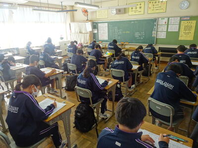 どの学年・学級も集中してテストに取り組む姿を見ることができました。