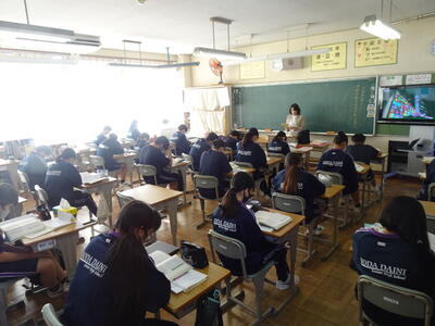 代休明けの今日、3年2組、3組で授業研修を行いました。3年2組では、国語の授業で「旅への思いー芭蕉とおくの細道―」、3年3組では、美術の授業で「『現代社会の今日的課題』を色や形で立体的に表現しよう」を扱いました。2クラスとも自ら課題に取り組む素晴らしい姿で授業に臨んでいました。とても実のある研修ができました。