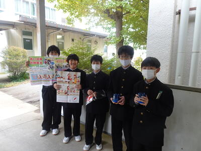 また、昼休みに、国際ボランティア部で赤い羽根募金も行いました。