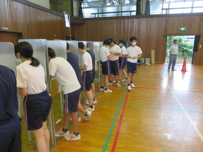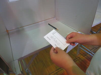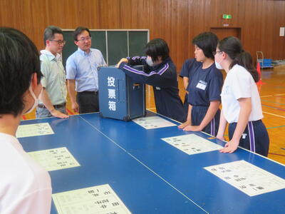 映像で説明していただき、その後で受付、記入、投票、開票と本番の選挙で使うものを実際に使い行いました。