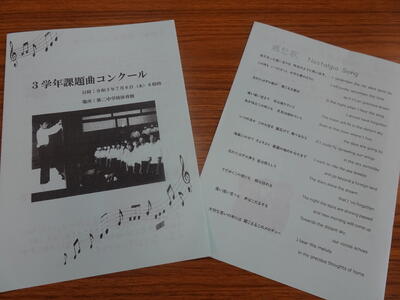会の後は5校時の授業見学をしてもらい、6校時には3年生の「学年課題曲コンクール」に招待して、合唱を聞いてもらいました。