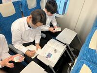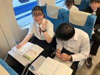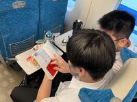 新幹線が動き出すと始まりました。恒例のカードゲーム大会。これで友達の仲も深まります。
