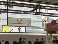 前方にろうそくのような建物。京都タワーが見えてきました。