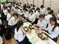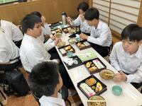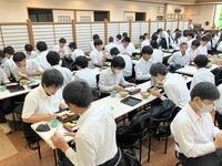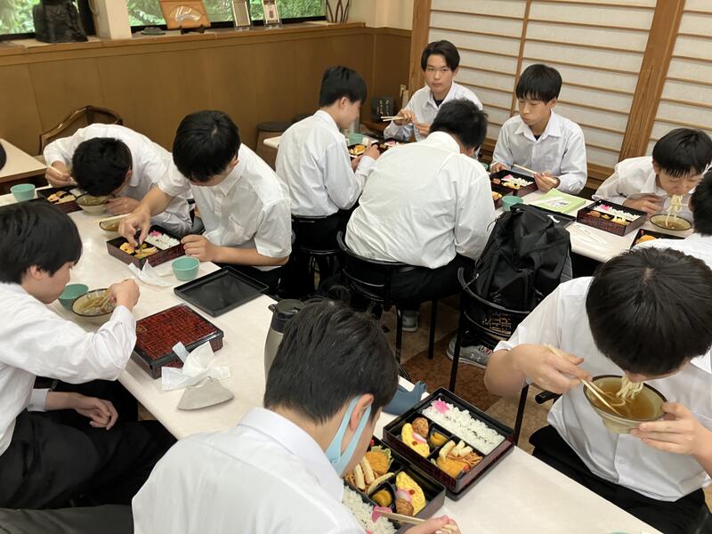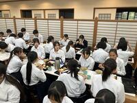 班別行動でたくさん歩いてお腹が減ったのか、みんなご飯をおかわりしています。