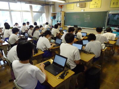 礼会後は、各学級で夏休みの課題集めや夏休みの振り返り、休校中の生活や学習について説明を行いました。特にタブレット(クロームブック)の持ち帰りと活用の仕方には時間をかけました。