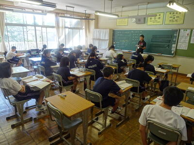 本日、1年生全クラス(1学級ごと)でいじめ防止の授業を外部講師の方に来ていただき行いました。SNSにおける悪口の書き込みに対してどのような選択肢をとるのか。一人一人が自分の意見を持って、正しい行動に移せるか。それは「いじめはよくない」という学級の雰囲気が大切であることを生徒たちも真剣に学んでいました。