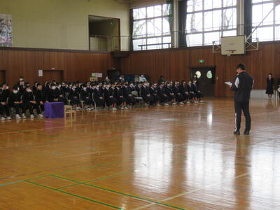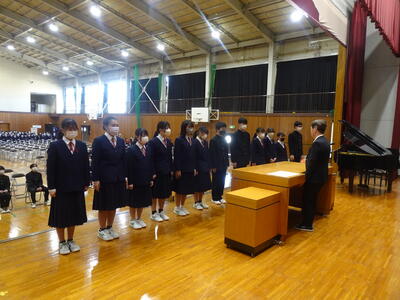 3年生に引き続き、1・2年生も卒業式練習が始まりました。はじめは服装のこと、立ち方、座り方、礼の仕方、拍手の仕方と作法を丁寧に確認しながら練習を行いました。当日、最高の卒業式になるようにこれからも練習を行っていきます。